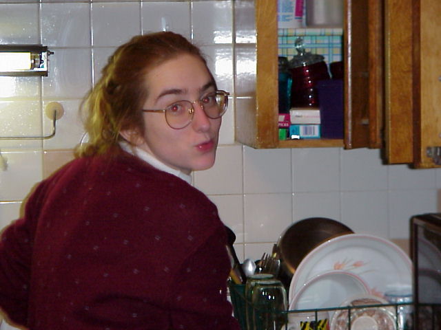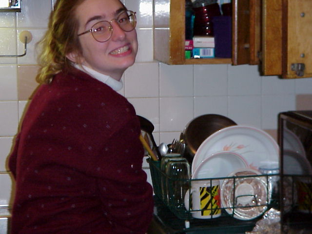 caught in the act of washing dishes.